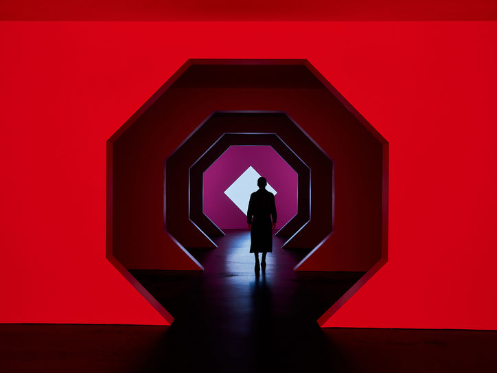 넓은 팔각형 복도는 매 걸음마다 색상과 소리가 바뀌며, 방문객을 A EYE라고 불리는 거대한 디지털 눈으로 안내합니다.